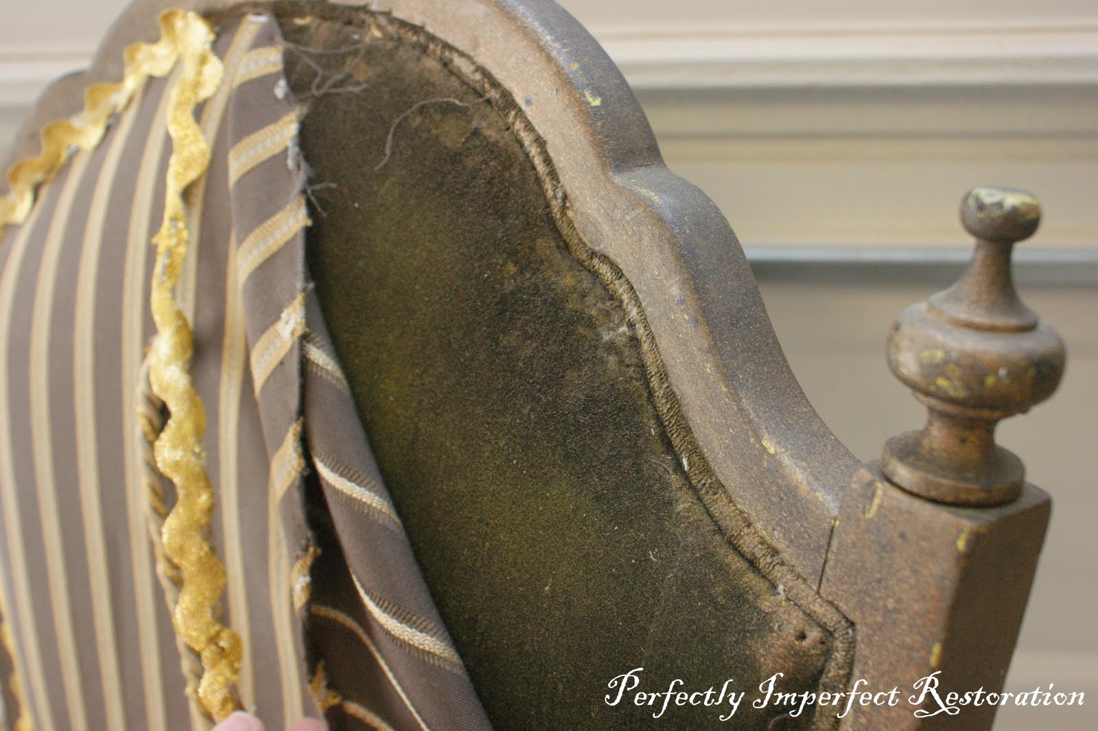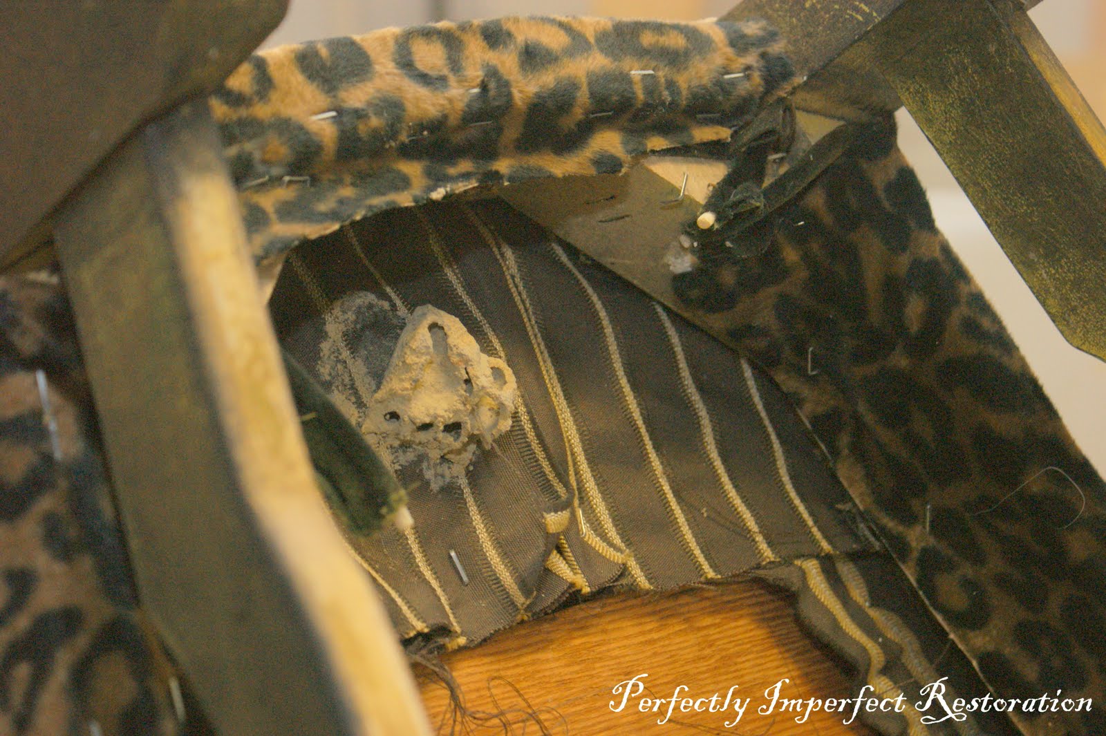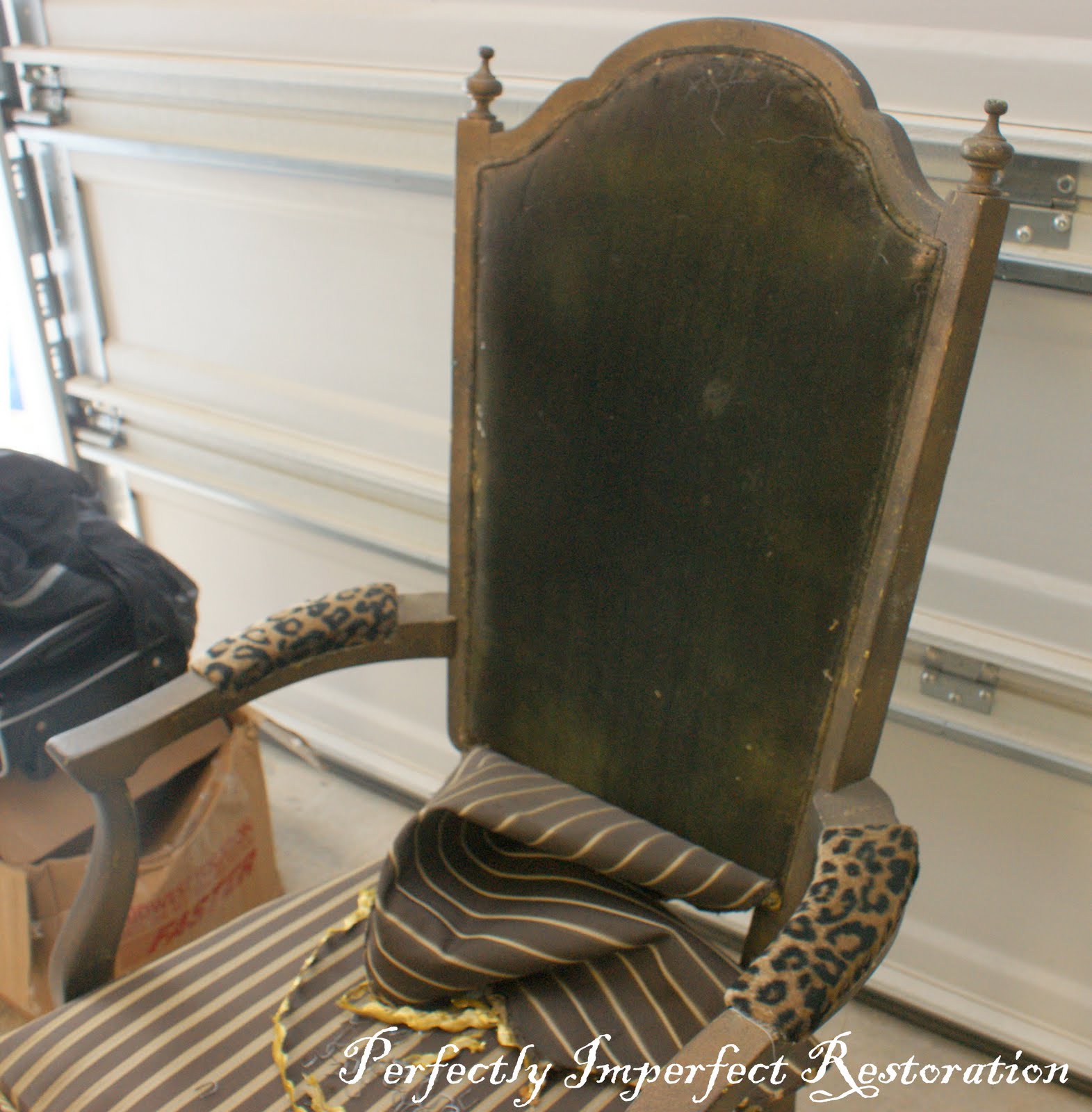 Remember the lovely (and hideous ) chair? Ok, I know there are some of you that love it….maybe…and I’m sorry, but I just can’t do the ric rac and animal print. And I PROMISE if you saw this mess up close you would wonder what in the world the previous owner was thinking.