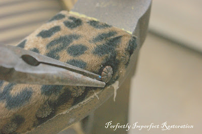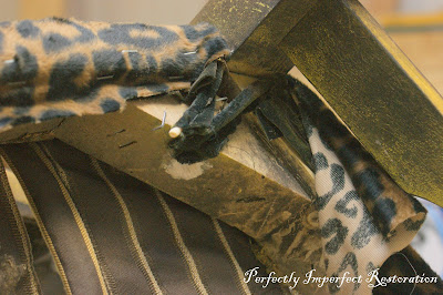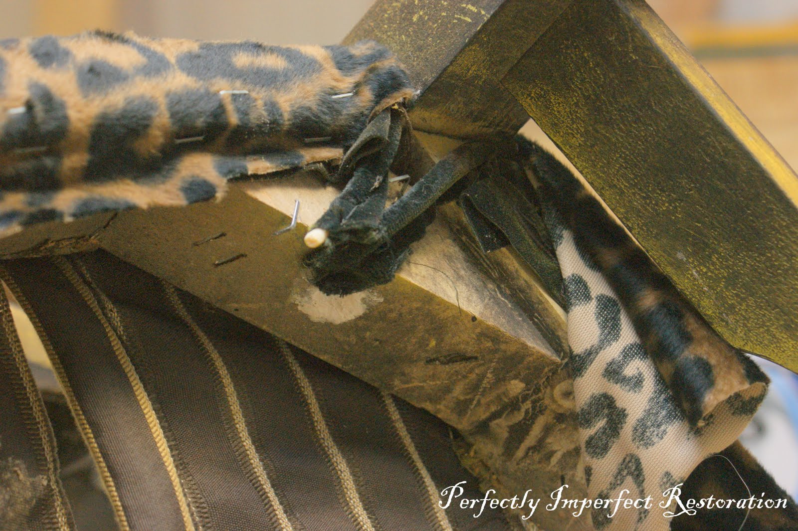 The difficult part is that there is fabric also wrapped around an extra portion of wood underneath the seat cushion….which will be lovely, but a pain to “redress.”