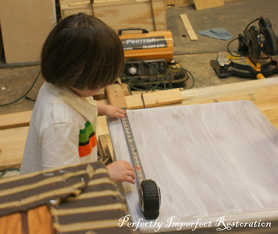 Luckily, I had my handy tape-measurer out there with me, or I might have gotten ugly….under my breath, of course. Gray was cracking me up….he was counting in tens to measure all the tables, only to declare they were all “1 inches long, mommy!”