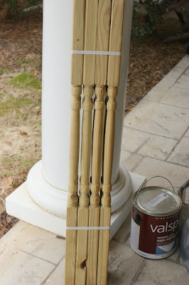 I saw these spindles and knew I could come up with something great to do with them….they were only .99! I got twelve in all. This may be a disappointing post, because they’re still a work in progress. But I thought I would run it by all of you to see what your great ideas are!