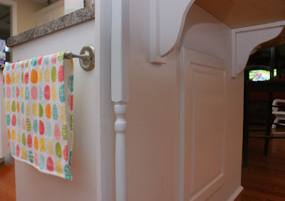 You definitely need to come to my house and inspire me! You have great, creative ideas. We recently bought a foreclosure and EVERYTHING needs to be redone. I love the spindles under the counter. It looks beautiful, and it's so unique. I'm a big fan of anything distressed, but my advice would be (if it's not much trouble), is to do a couple of distressed, and a couple of non-distressed. Prop them up and look at them for a few days and see which one you're drawn to most. I just got an old window for my birthday, and I'm snagging your picture framing idea.