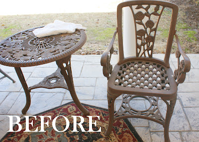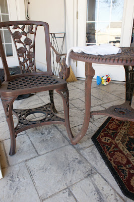This is a little table we had at our apartment for our little balcony. It was the perfect size and I always loved the little rose detail. Except now I’m kind of over it. It looks a little forlorn–kind of tired.