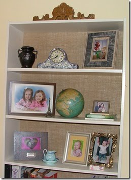 Jenni from Shared from Way Over Here backed a bookcase with burlap…what a simple but lovely transformation!