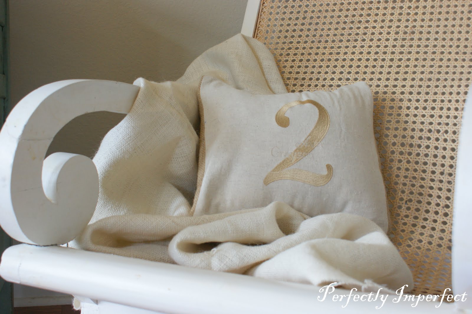 Love the monogrammed vintage pillow cover!! Beautiful!