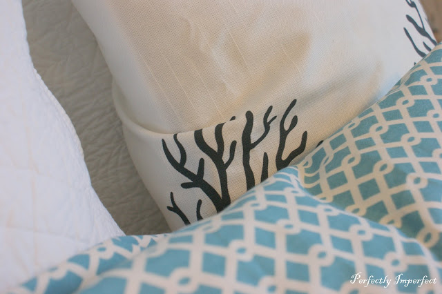 I’ve mixed pattern and texture, and I couldn’t be more thrilled. I might have to move in here until I tackle painting and accessorizing our bedroom.