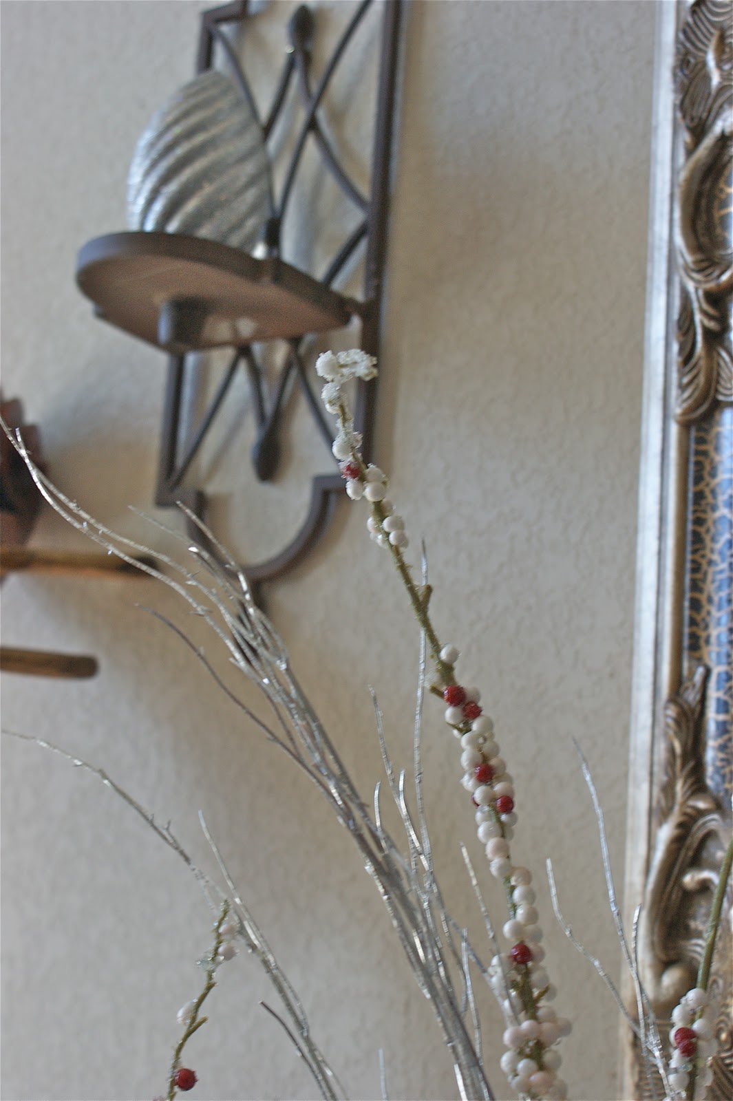Absolutely beautiful entry hall! How did you get the glitter and ice look on the branches in the vases? Love it!!