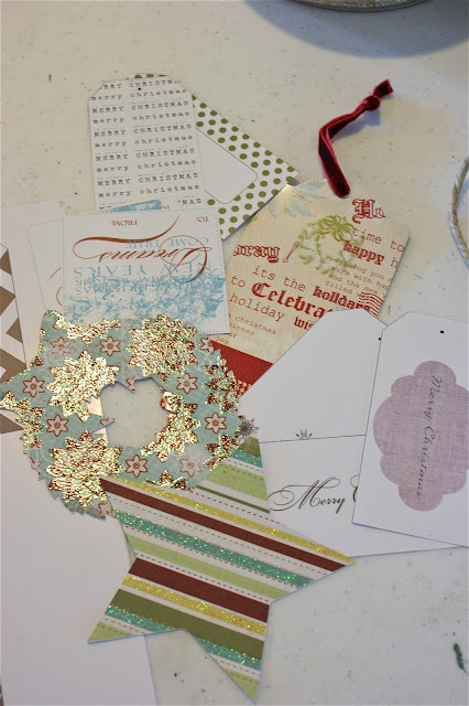 Get all your tags cut out before you begin. No fun to cut out a new tag for every present. The colorful tags I made with my cricut and the others
