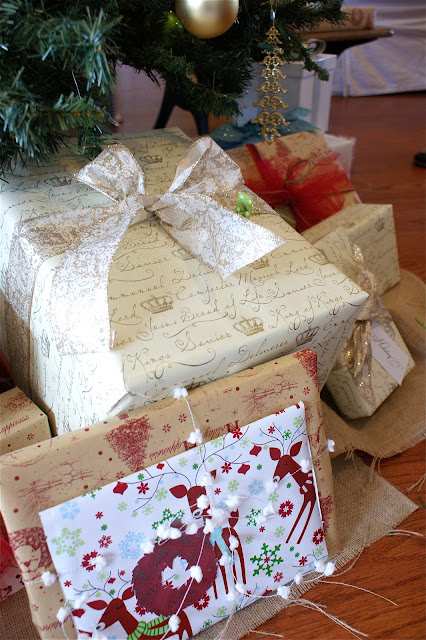 I love how all your wrapping came out. I usually do a wrapping station but have too many people living here this year to do so. I told my husband this year that everything goes for wrapping paper but he bought 4 giant rolls of one paper design and that's what everything is wrapped in. Red and Green! All sorts of real ribbons, however. Saved over the last five years.