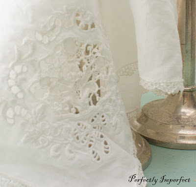 I’ll add some more pictures when I pick up the last pieces to add to these Vintage candlesticks and vintage linen napkin–such sweet “sit-about’s.”