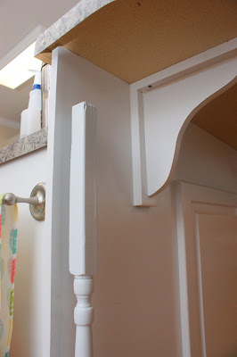 You definitely need to come to my house and inspire me! You have great, creative ideas. We recently bought a foreclosure and EVERYTHING needs to be redone. I love the spindles under the counter. It looks beautiful, and it's so unique. I'm a big fan of anything distressed, but my advice would be (if it's not much trouble), is to do a couple of distressed, and a couple of non-distressed. Prop them up and look at them for a few days and see which one you're drawn to most. I just got an old window for my birthday, and I'm snagging your picture framing idea.