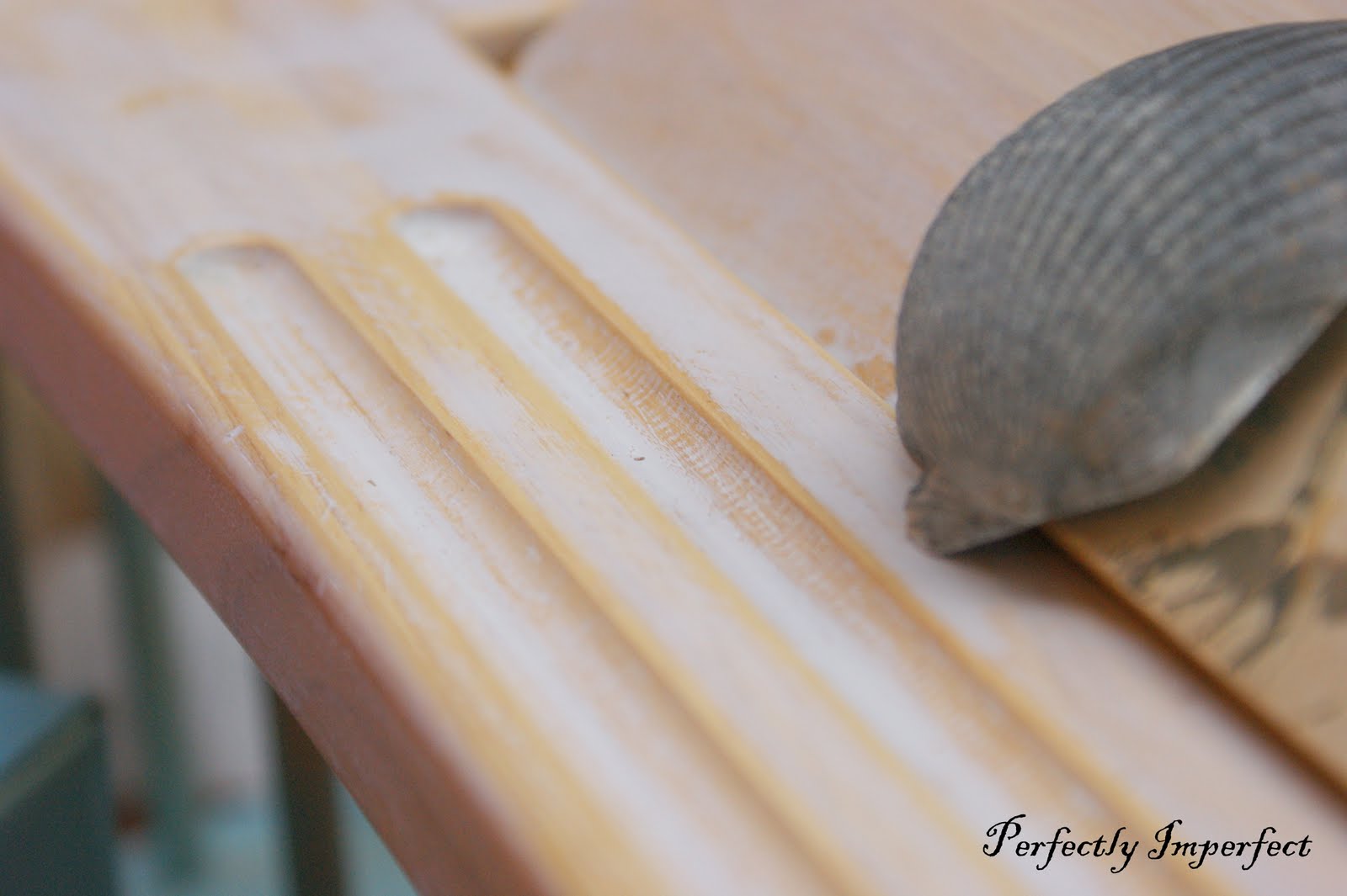 Here’s some close-ups…I love that it’s not just whitewashed, but there are places that it looks worn and bleached.  (This technique is beautiful for furniture as well, ladies)