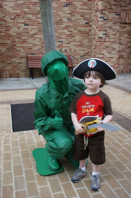 Gray with a toy soldier from toy story….what I love is that he wore his pirate hat and carried his sword 98% of the time. He loved it and we couldn’t convince him to take it off. So cute.