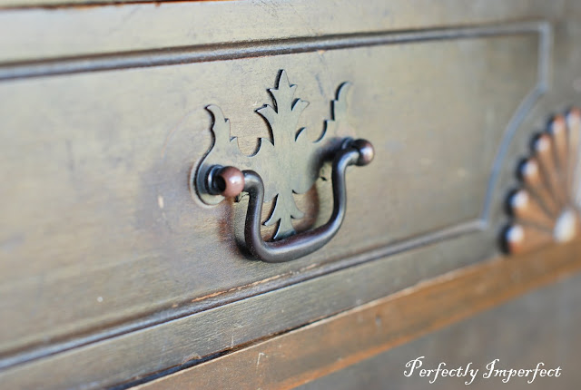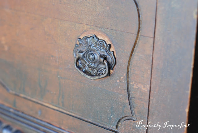 All the original hardware is still in beautiful condition…easily painted for a new look or to create a whole new look for the dresser, I might changed it out.