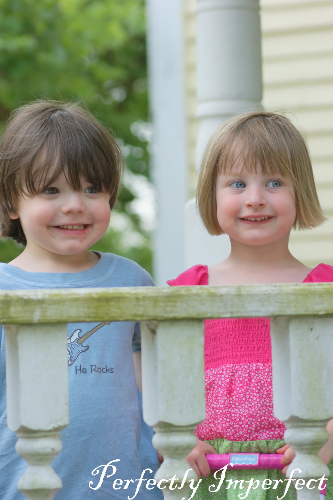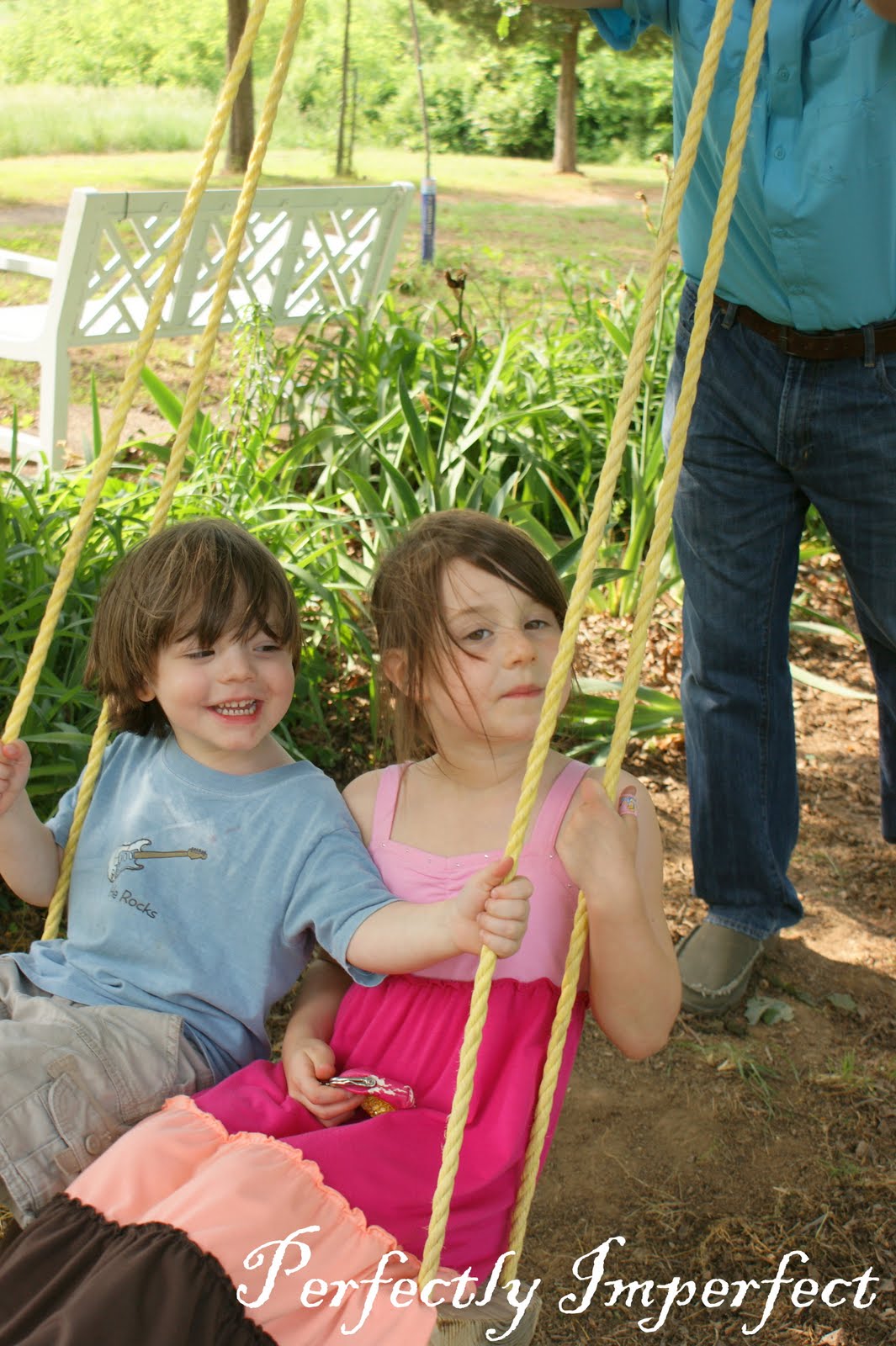 swinging on handmade tree swings with their cousins (could they look more like bro and sis??)