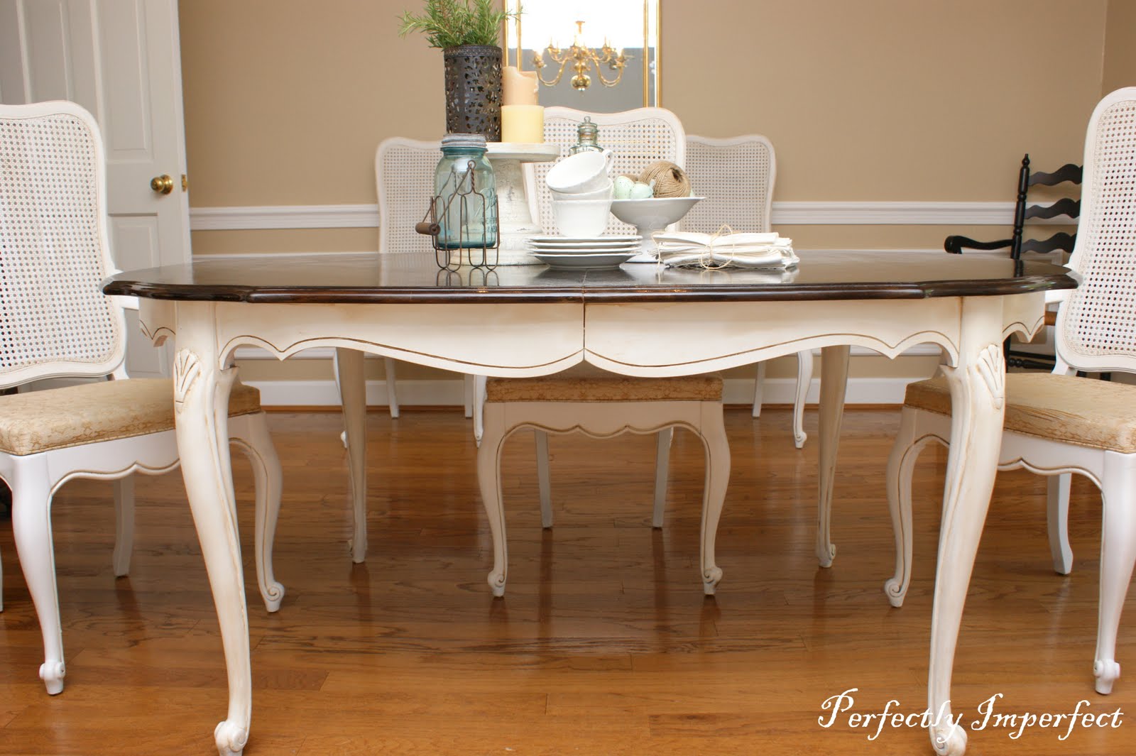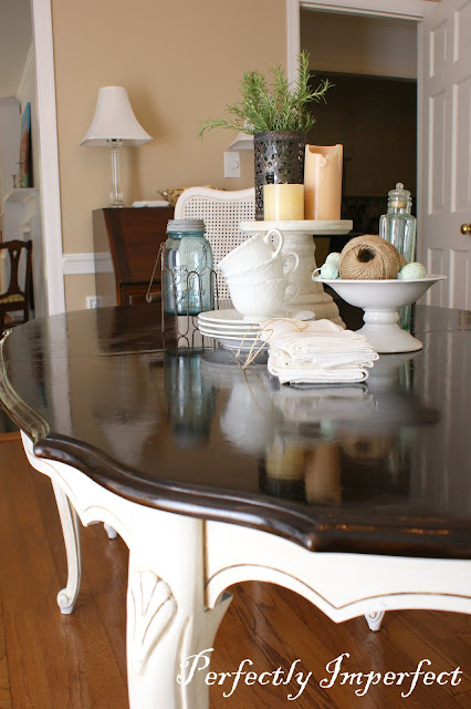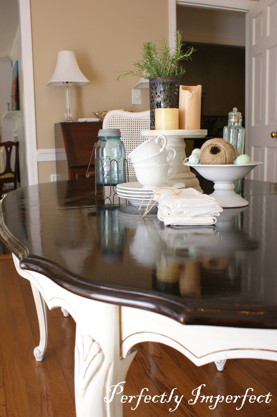 Beautiful! Love the dark stained top with the white body!! Have a table just like this style… I use it as my construction table… maybe transforming it soon!