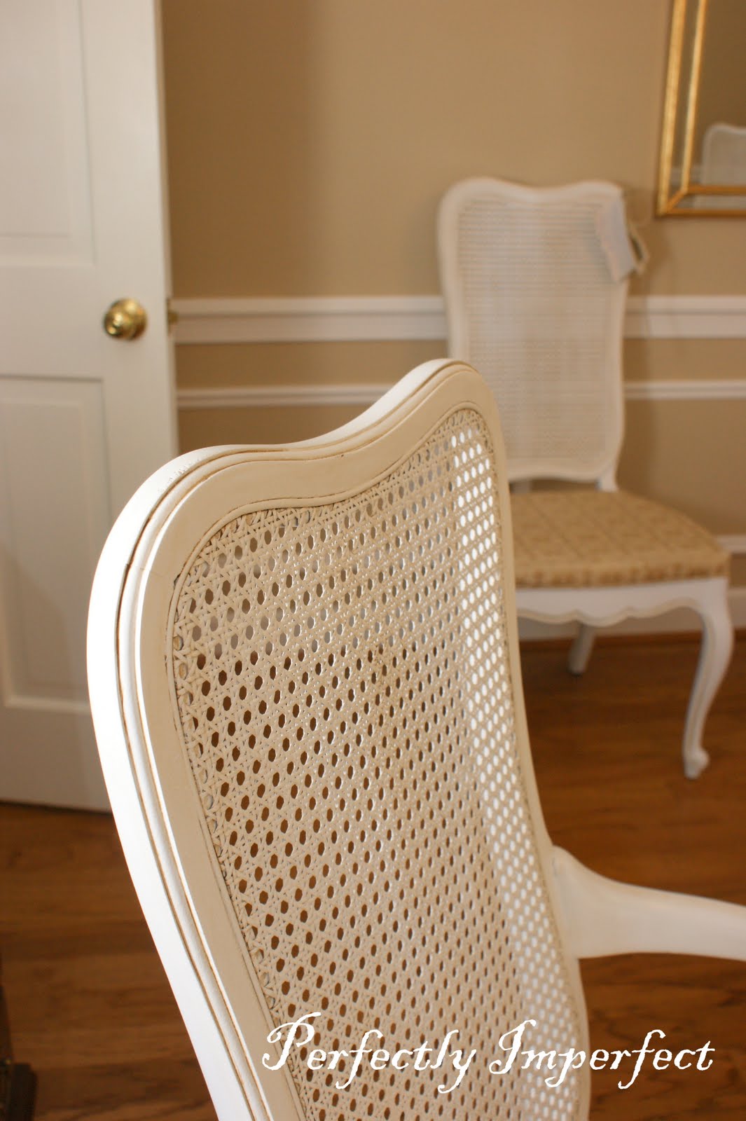 The legs and chairs were painted white and lightly glazed brown, which slightly softened the look. She hasn’t found the perfect fabric yet, so we left the original upholstery….which looks great in her room. Definitely just right until she finds something that’s totally her.