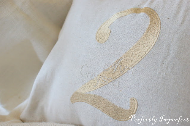 Love the monogrammed vintage pillow cover!! Beautiful!