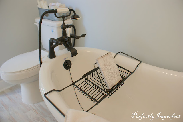 I absolutely love that tub! Everything looked so pure and clean…with all the white…BEAUTIFUL! I can not wait to see more!