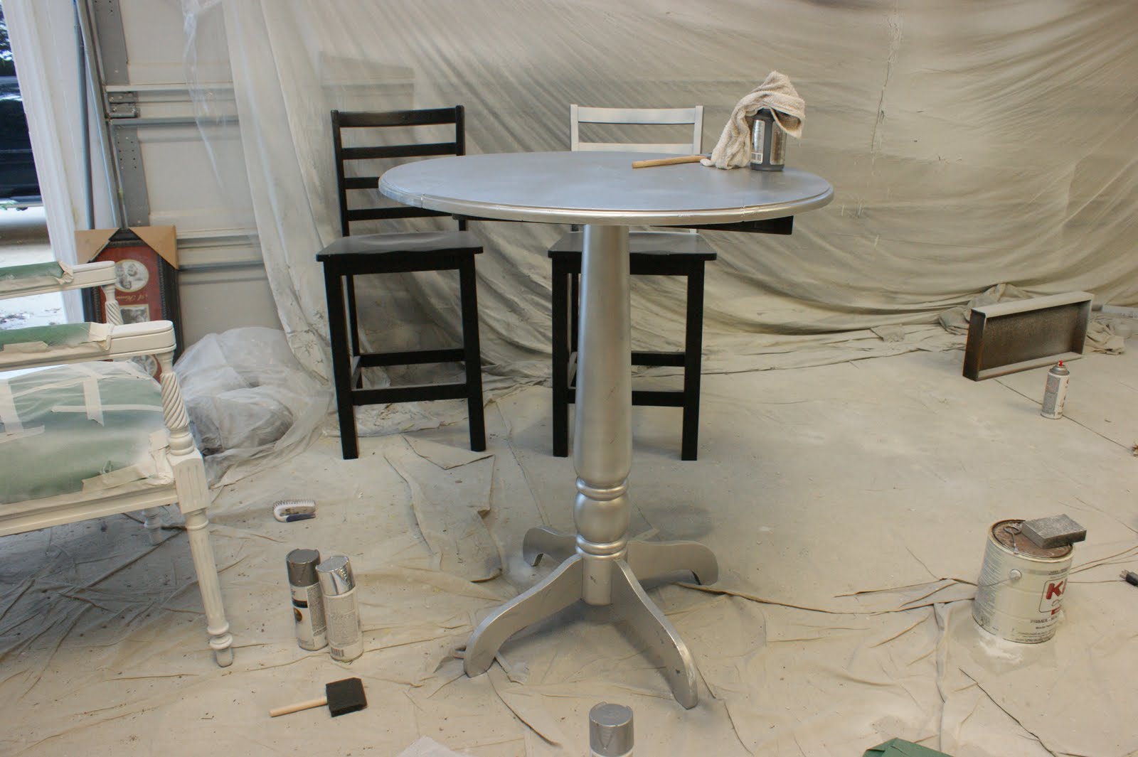 After I dropped off the first load of eight pieces, Stephanie and I bounced some ideas around about some other pieces they already had. One such set was this little pub table and stools in basic black from Walmart. They were going to get rid of it, and I just, you know, suggested we should paint it. Is there another option?