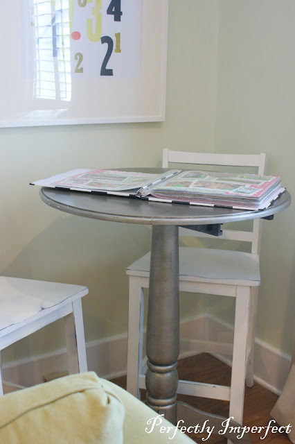 This is the other room they redecorated…where the other room is sophisticated and classic, this is so fun and youthful! And this is where the little pub table was headed.