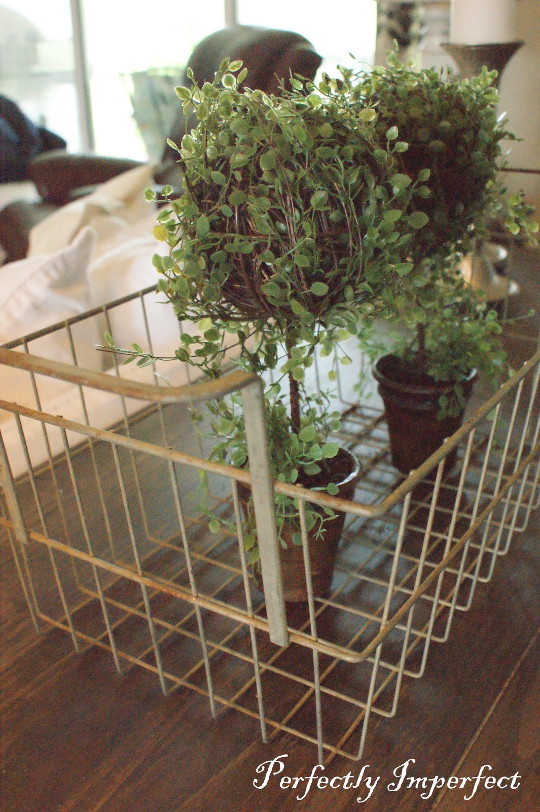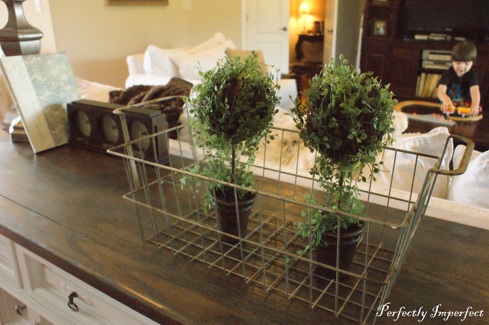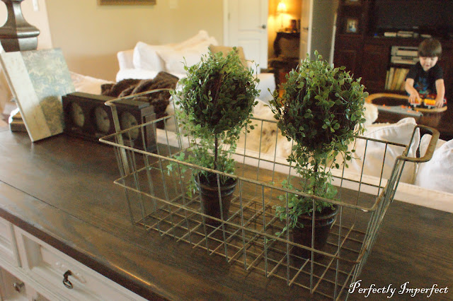 I have enjoyed freshening our home with some new accessories.  Again, these can make such an impact for such little investment.  I’ve been looking for a wire basket since January…finally!! The little topiaries were clearanced at Ballard Designs in Jacksonville.  When I was at the Mayo, I discoverd Ballard’s has an actual store.  An actual, real-live place.  Why had no one told me this??