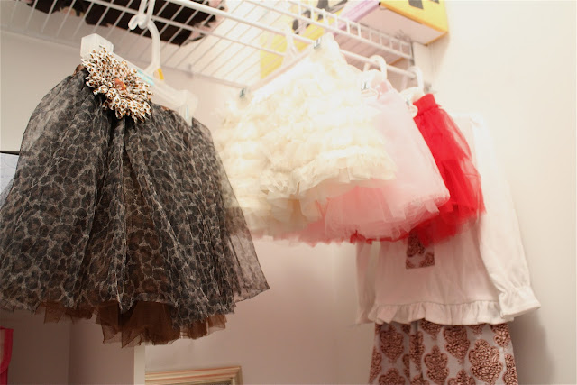 Back to the tutus, how adorable is it they’re so fashionable now?  As you can see, we love a tutu around here.  We’ve actually only bought one, and were given the rest by friends and family…but I’m sort of smitten with them.  Especially now that they’re hanging all color-coordinated and orderly.