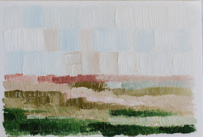 From my 100 Landscapes, The Patchwork Series was inspired by the little moments of time within time we reside in. Almost like a dream within a dream. I sat down one day during the painting of my year’s 100 and this series just came out of my hands. I hope it reminds you to be present in each small square of time within time, to slow down, to notice the specks within the entire painted picture of your life.